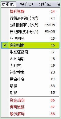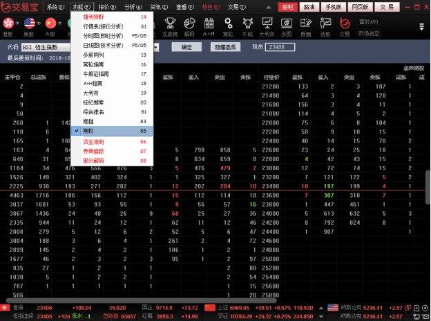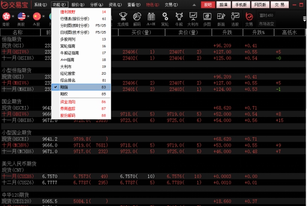 打开"功能"菜单下的“期指”。或者打开功能菜单下的“期指”按钮。
