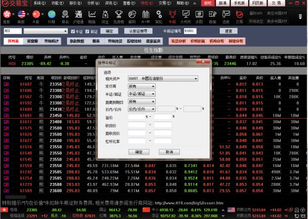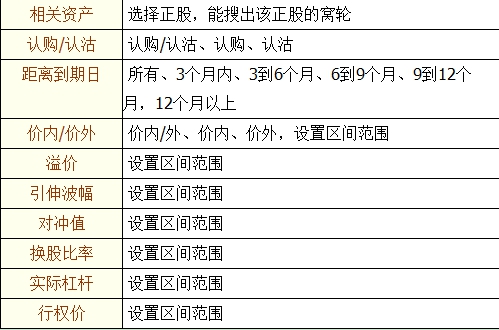 点击左边的“认股证搜寻”,弹出设定搜寻条件窗体,如下图
