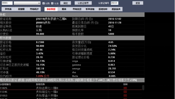 条件设定完后,点击确定,搜出您要查看的正股相关认股证,满足条件的所有认股证以阵列图方式列出