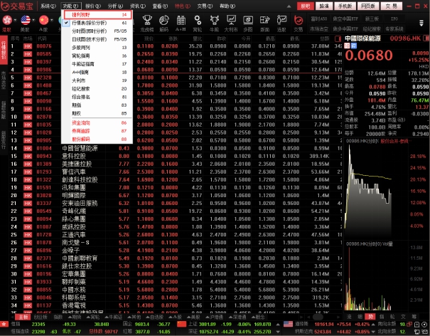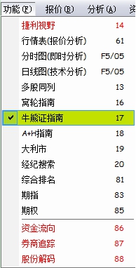 点击菜单栏的"功能"菜单下的"牛熊证指南"。如下图。