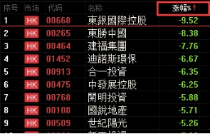以任一栏目的数据值排序。例:点击"涨幅"栏目名,该栏目名旁会出现"↑",所有股票按"涨幅"从低到高排列;再点一次,则"涨幅"栏目名旁会出现"↓",表内所有股票按涨幅从高到低排列。