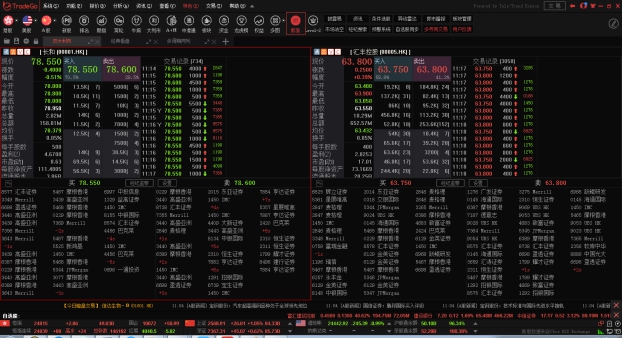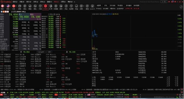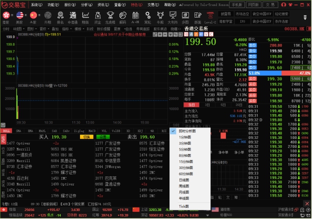可查看个股走势图及买卖信息。