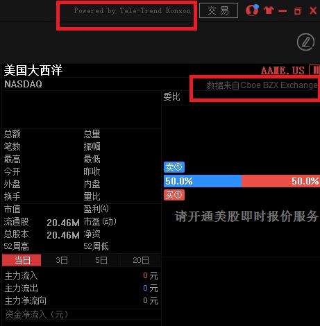 设置主界面”Powered by Tele-Trend Konson”标题文本颜色与美股大利市界面”数据来自Cboe BZX Exchange”文本颜色一致。