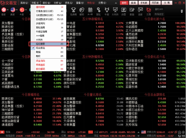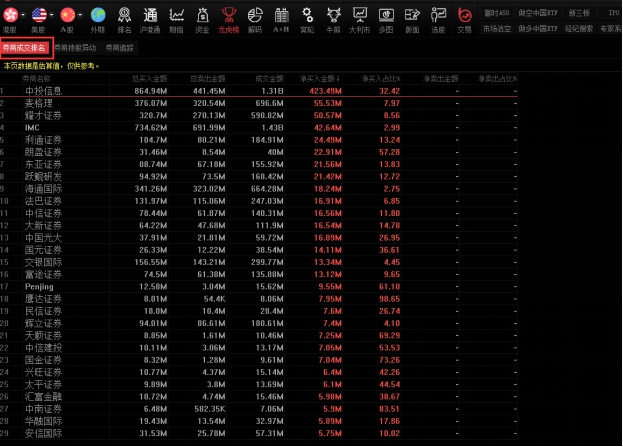 点击标签“券商成交排名”查看券商成交排名列表。