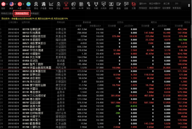 点击标签“券商持股异动”查看券商持股异动列表。