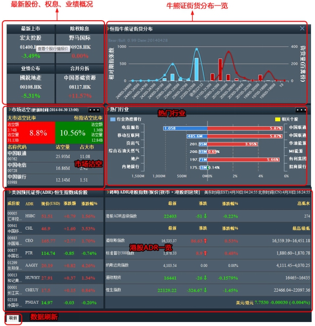 一眼纵观全球市况,隔夜外盘、ADR报价、当日除权信息、当日派息等。