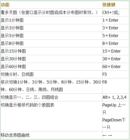 快捷鍵F8:依次切换5分钟、15分钟、30分钟、60分钟、日线、周线、月线图