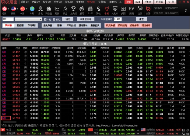 或者点击工具条的“牛熊” 指南图标,打开窝轮指南,如下图。