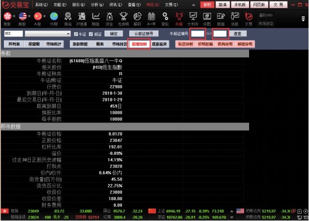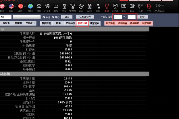 可对同一个正股的两个相关牛熊证进行比较: