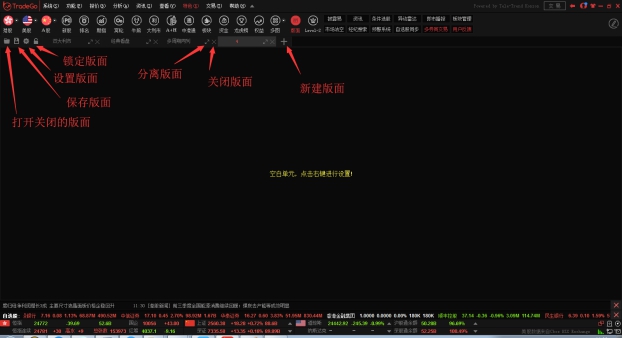 版面默认存在三个版面,双大利市,经典看盘,多周期同列。这三个版面是锁定状态,不能修改和删除操作,但是可以关闭。