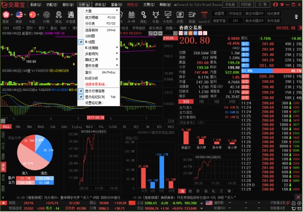 点击"分析"菜单>显示“行情信息":