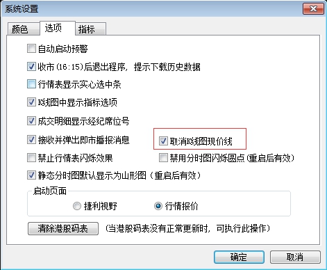 如果想取消现价线,在“系统设置”菜单进行设置,界面如下: