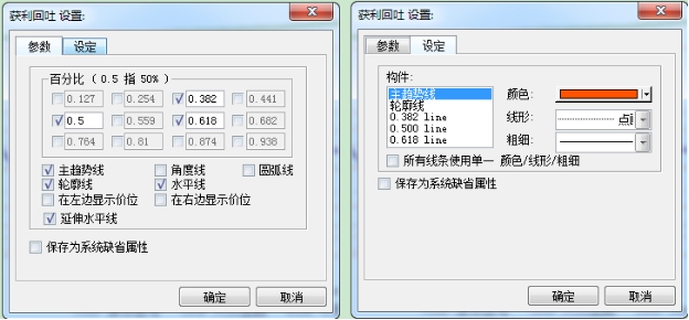 点击"分析"菜单>"画线工具">"获利回吐",对走势图进行获利回吐技术分析。