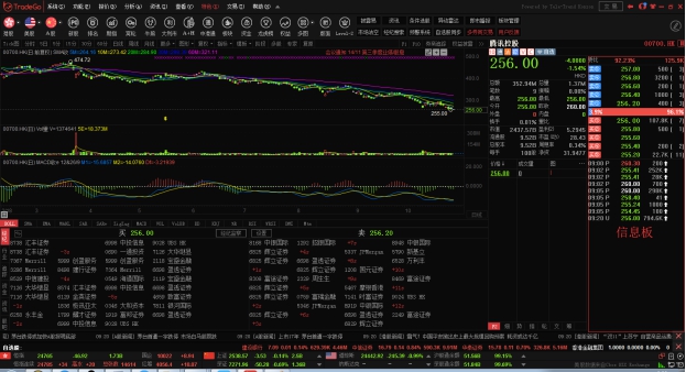 图表中底层显示即市买卖委托挂单之经纪牌,在黄色字体“买入”或“卖出”标题处单击,可切换显示经纪名称或经纪号码。
