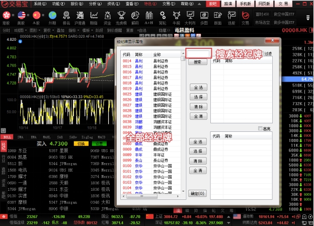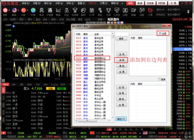 l “选项”选择“过滤”:可在左边的经纪牌列表中勾选单个或多个经纪,也可点击“全选”选择全部经纪,然后在“选项”选择“过滤”,所选的经纪将会进行过滤显示处理: