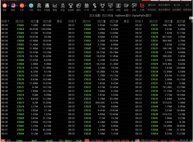 显示每笔成交的时间、成交价、现手、成交额。可按任一栏目升、降排序。