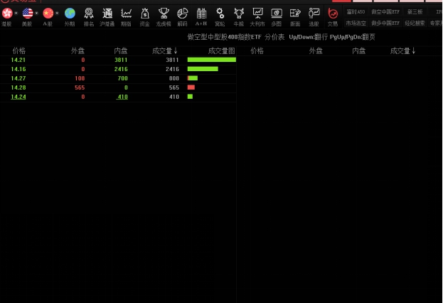 显示价格和成交量分布状况;可按任一栏目升、降排序。