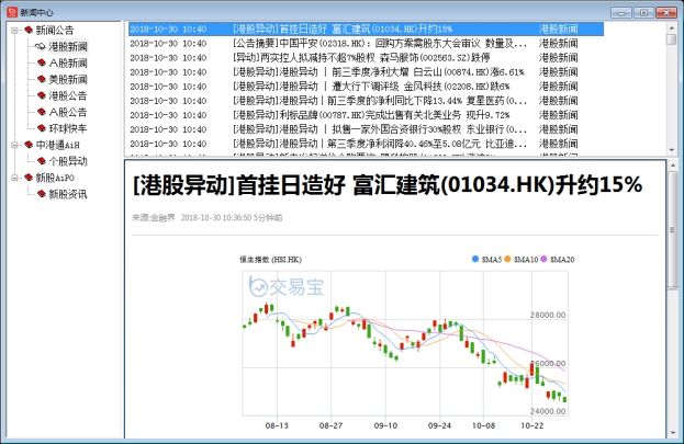 点击工具栏“新闻公告”图标,打开最新新闻资讯。