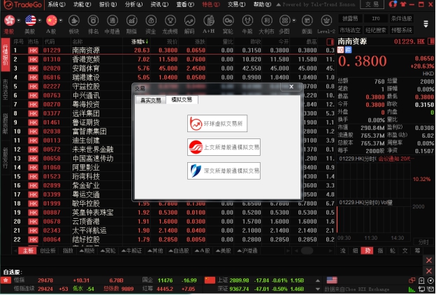 点击打开之后会出现一个券商选择列表,点击弹窗下面一排进入模拟交易所